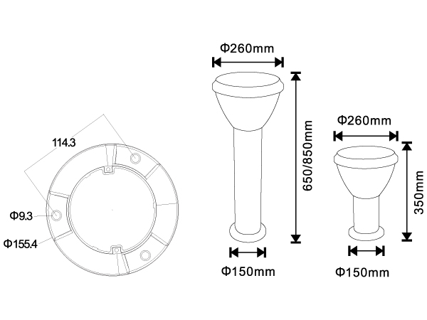 SizeØ260*H350/650/850mm
